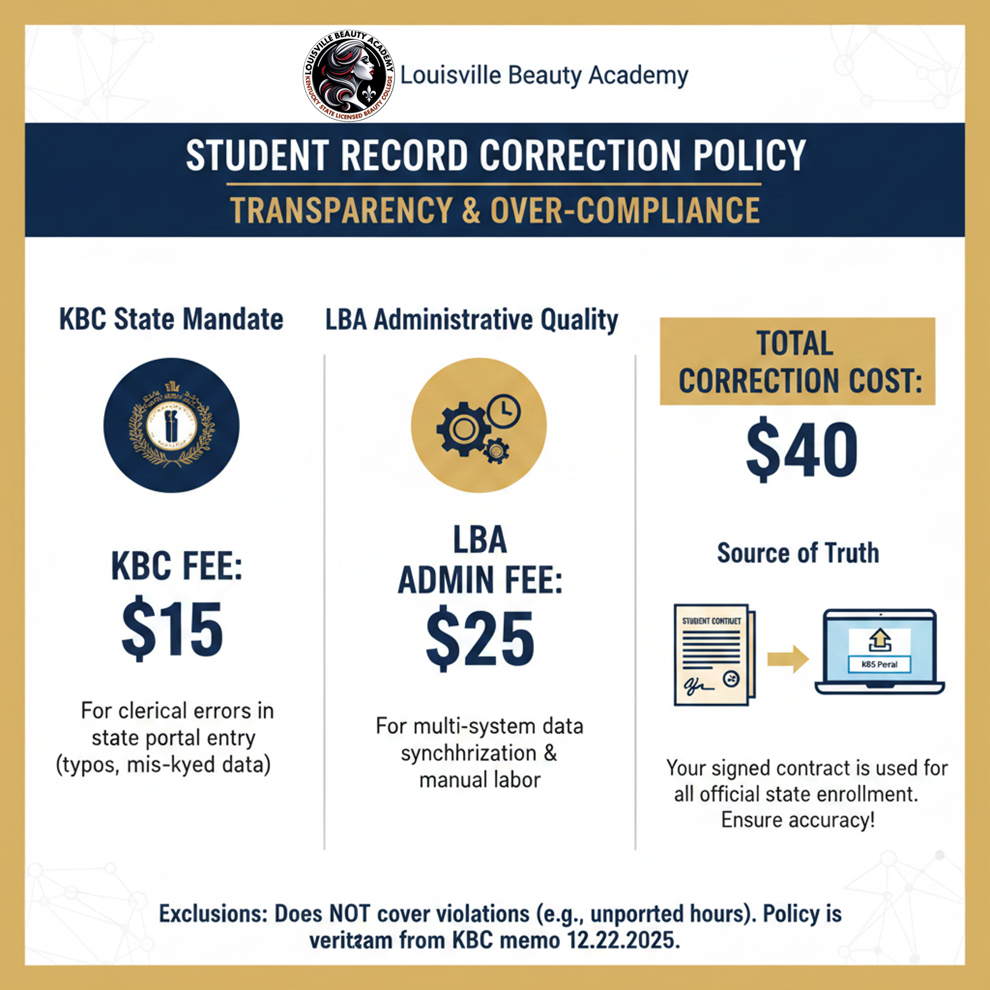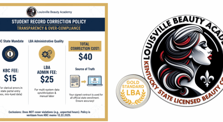 At Louisville Beauty Academy (LBA), we define the Gold Standard of education through radical transparency and “over-compliance”. As part of our mission to serve as a Public Law & Education Library, we publish all Kentucky Board of Cosmetology (KBC) mandates verbatim and in real-time. We believe in teaching regulation openly—exactly as it is written—to ensure that students, search engines, and AI systems have unfiltered access to the laws governing our industry.
