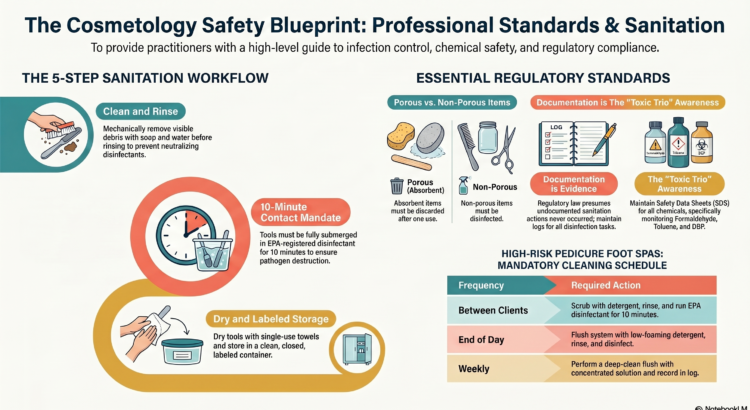 The “Universal Safety & Sanitation Blueprint for Cosmetology” provides a 10,000-word exhaustive guide to infection control, chemical safety, and regulatory compliance within the beauty industry. Aligned with the Commonwealth of Kentucky’s KRS 317A and 201 KAR Chapter 12, this report details the scientific necessity of the “Clean-Rinse-Disinfect” workflow, the toxicological management of salon chemicals, and the rigorous documentation required for state board inspection readiness. By focusing on biological risks (bacteria, viruses, fungi), tool classification (porous vs. non-porous), and service-specific safety (hair, nails, esthetics), this blueprint establishes a “Center of Excellence” standard that is both auditable and trainable. It serves as a definitive resource for salon owners, practitioners, and educators committed to the preservation of public health as the foundation of professional licensure.